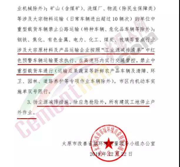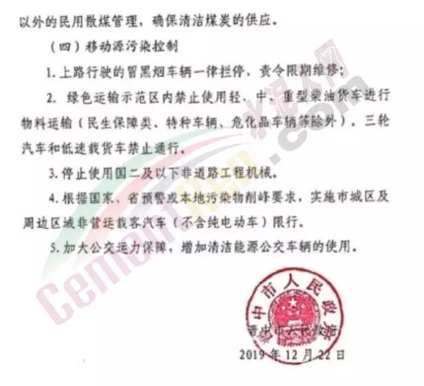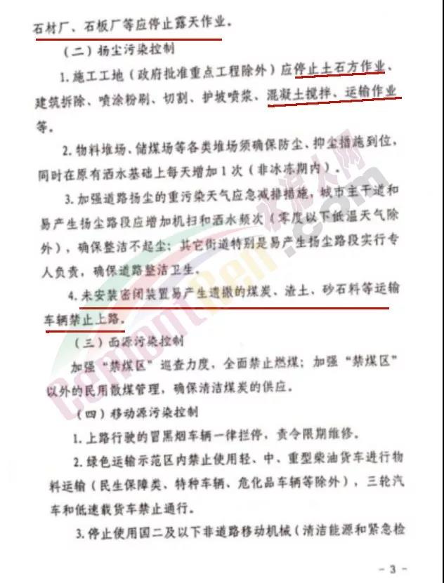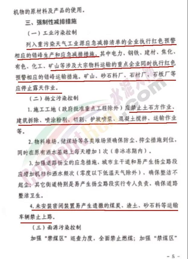日前,唐山市人民政府發(fā)布《關于啟動重污染天氣Ⅱ級應急響應的通知》稱將于今日(12月23日)12時起全市啟動重污染天氣Ⅱ級應急響應,解除時間另行通知。要求水泥行業(yè)企業(yè)嚴格按照《重污染天氣應急工業(yè)源污染物減排清單》中“橙色預警減排措施”執(zhí)行。礦山、沙石料廠、石材廠、石板廠等停止露天作業(yè);施工工地停止土石方作業(yè)、建筑拆除、噴涂粉刷、護坡噴漿、混凝土攪拌等;未安裝密閉裝置易產生遺撒的煤炭、渣土、砂石料等運輸車輛停止上路。詳情如下: