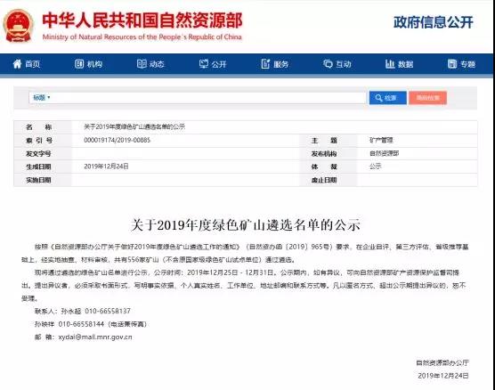 日前,國家自然資源部發(fā)布《關于2019年度綠色礦山遴選名單的公示》稱:按照《自然資源部辦公廳關于做好2019年度綠色礦山遴選工作的通知》(自然資辦函〔2019〕965號)要求,在企業(yè)自評、第三方評估、省級推薦基礎上,經實地抽查、材料審核,共有556家礦山(不含原國家級綠色礦山試點單位)通過遴選。并將通過遴選的綠色礦山名單進行公示,公示時間:2019年12月25日-12月31日。公示原文如下: