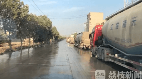 鶴林水泥公司位于鎮(zhèn)江市丹徒區(qū)高資鎮(zhèn),主要生產普通硅酸鹽水泥,根據知情人的指點,2019年12月9號下午,記者來到鶴林水泥公司的大門前,只見不寬的道路上停著幾十臺大型水泥罐車,這些罐車都已經裝滿了水泥,等待上路出發(fā)。