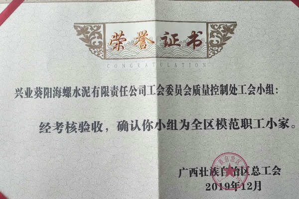 近日,自治區(qū)總工會公布全區(qū)模范職工之家、全區(qū)模范職工小家名單,全區(qū)105個基層工會榮獲“2019年全區(qū)模范職工小家”榮譽稱號,興業(yè)葵陽海螺水泥有限責(zé)任公司工會委員會質(zhì)量控制處工會小組獲此殊榮,這是公司首獲此項榮譽。
