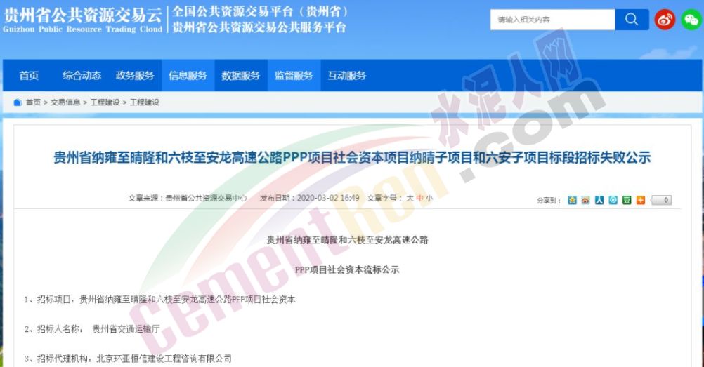 3月2日:貴州省公共資源交易中心發(fā)布《貴州省納雍至晴隆和六枝至安龍高速公路PPP項(xiàng)目社會資本項(xiàng)目納晴子項(xiàng)目和六安子項(xiàng)目標(biāo)段招標(biāo)失敗公示》。