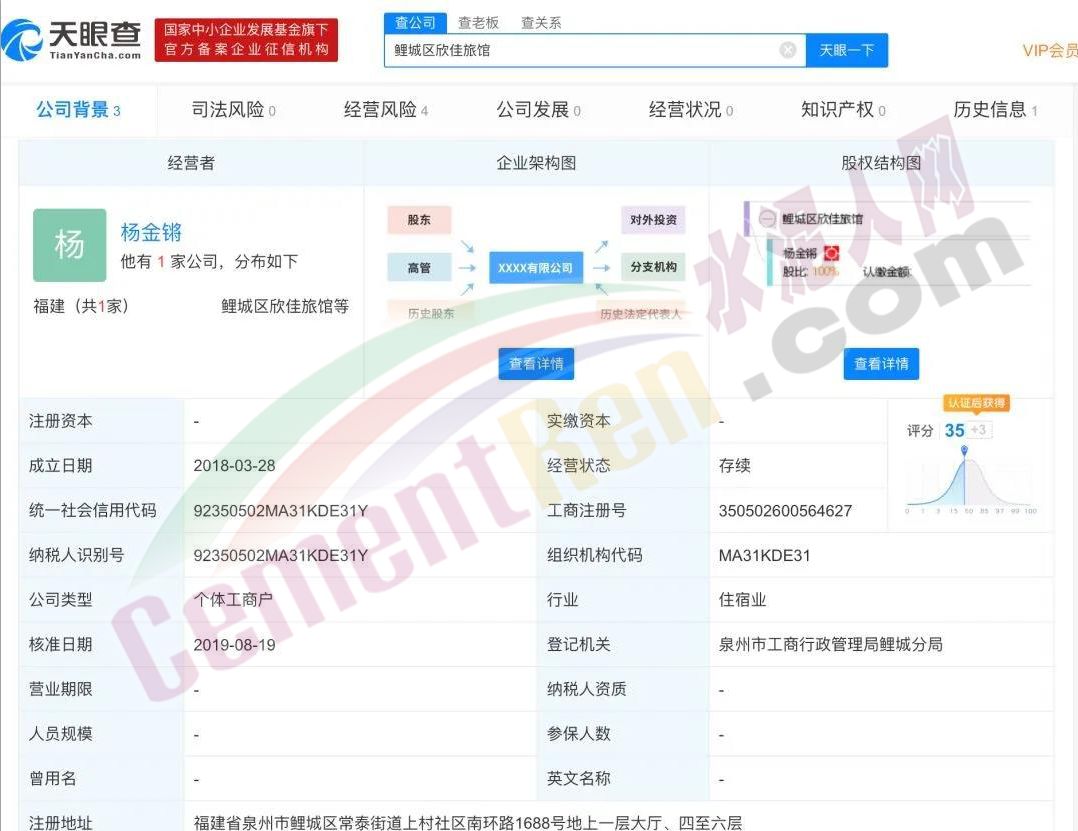 而網(wǎng)友也將欣佳酒店的“前世今生”都扒了出來,酒店的法人為楊金鏘。