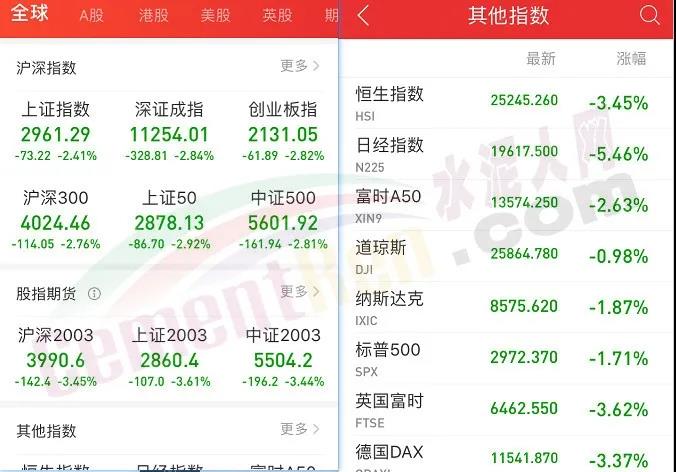 國際油價雪崩,導致全球避險情緒再次升溫,美國三大股指期貨開盤后,跌幅不斷擴大。截至發(fā)稿,道瓊斯指數(shù)期貨跌4.74%,標普500指數(shù)期貨跌4.90%,納指期貨跌4.82%,全球主要股指集體大跌。