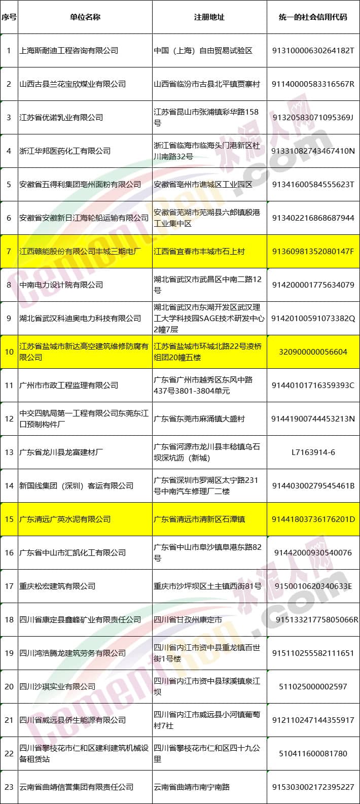 23家移出安全生產失信聯(lián)合懲戒“黑名單”單位名單中包括名單中,包括位于江西省宜春市豐城市石上村的江西贛能股份有限公司豐城三期電廠;位于廣東省清遠市清新區(qū)石潭鎮(zhèn)廣東清遠廣英水泥有限公司等企業(yè)。