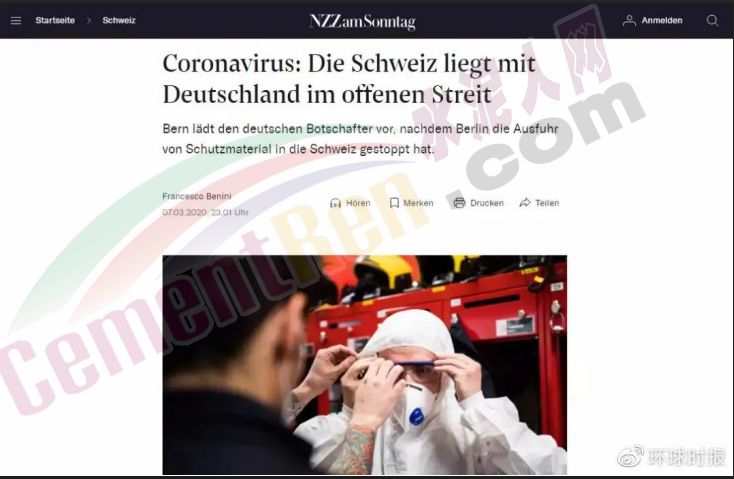 由于防疫物資緊張,海外版“攔截口罩”劇情上演。據(jù)《新蘇黎世報》等媒體3月7日報道,近日,因為德國限制口罩及其他防疫物資出口,德國海關(guān)上周攔截了24萬只瑞士進(jìn)口的防護(hù)口罩,導(dǎo)致同樣急需物資抗擊疫情的瑞士大為不滿。數(shù)據(jù)顯示,瑞士國內(nèi)目前已確診超200例新冠肺炎病例,國內(nèi)醫(yī)療物資告急。