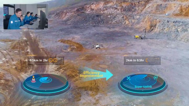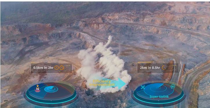 以礦區(qū)爆破預(yù)警應(yīng)用為例,“超級(jí)上行”可實(shí)現(xiàn)無(wú)人機(jī)4K高清視頻實(shí)時(shí)回傳,結(jié)合AI保障實(shí)時(shí)視頻清晰度和精準(zhǔn)識(shí)別,提升爆破警戒覆蓋范圍從原先500米擴(kuò)大到2公里,原有2小時(shí)人力檢查工作量,降低為半小時(shí),生產(chǎn)效率大幅提升,并同步提高了爆破的安全性。