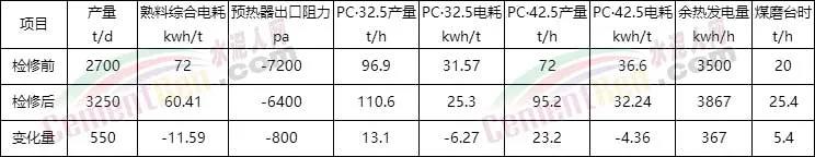 通過近一個月的緊張檢修和技術(shù)調(diào)試,熟料日產(chǎn)量穩(wěn)定在3200以上,預(yù)熱器系統(tǒng)阻力降低800Pa左右,通過持續(xù)的優(yōu)化操作,國慶節(jié)前夕更是創(chuàng)出日產(chǎn)量達到3383噸的好成績,各項指標又提升到了一個新的高度。水泥磨經(jīng)過調(diào)試后P.C32.5和P.O42.5水泥臺時分別提高了10t/h和15t/h。