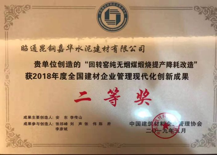 2020年1月17日,在昭通昆鋼嘉華水泥建材有限公司年會上山東棱角建材科技有限公司再次獲得了“年度最佳合作單位獎”。兩年的合作,昭通昆鋼嘉華憑借扎實的管理和技改帶來的技術(shù)經(jīng)濟指標改善,連續(xù)獲得了云水集團頒發(fā)的最大獎——“年度最佳效益獎”。