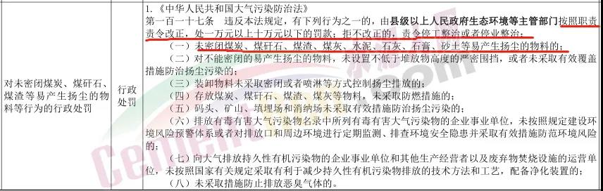 據(jù)水泥人網(wǎng)了解,該《指導(dǎo)目錄》明確指出,如果水泥企業(yè)存在未密閉煤炭、煤矸石、煤渣、煤灰、水泥、石灰、石膏、砂土等易產(chǎn)生揚(yáng)塵的物料的現(xiàn)象,將依照第一百一十七條之規(guī)定,由縣級(jí)以上人民政府生態(tài)環(huán)境等主管部門(mén)按照職責(zé)責(zé)令改正,處一萬(wàn)元以上十萬(wàn)元以下的罰款;拒不改正的,責(zé)令停工整治或者停業(yè)整治。