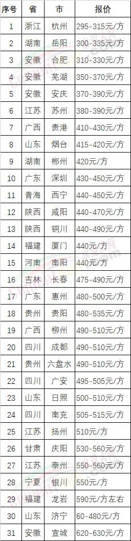 18日重慶主城區(qū)部分品牌水泥價格下調(diào)10-20元/噸,PO42.5散裝水泥成交均價在330-340元/噸,各企業(yè)日發(fā)運量均在萬噸以下,同比降低30~60%以上。