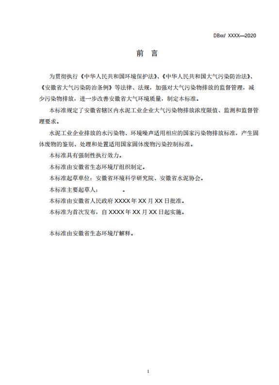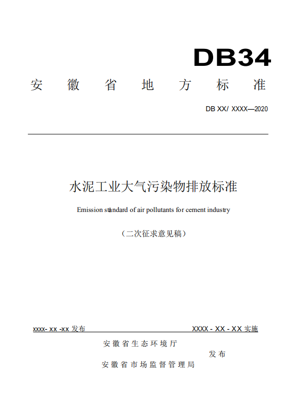 安徽省《水泥工業(yè)大氣污染物排放標(biāo)準(zhǔn)》