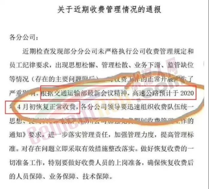 另一份《關(guān)于近期收費(fèi)管理情況的通報(bào)》文件顯示,根據(jù)交通運(yùn)輸部最新會(huì)議精神,高速公路預(yù)計(jì)于2020年4月初恢復(fù)正常收費(fèi)。