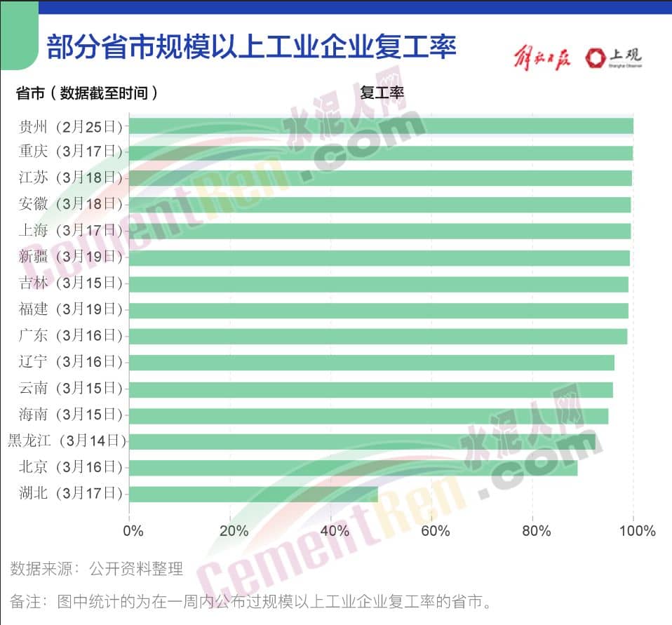 疫情的好轉(zhuǎn),也意味著更多的企業(yè)逐漸復(fù)工,走上正常運(yùn)營的軌道。據(jù)公開數(shù)據(jù),全國規(guī)模以上工業(yè)企業(yè)復(fù)工率提高較快,多個(gè)省份的復(fù)工率已經(jīng)在99%以上。其中,貴州在2月25日就已經(jīng)實(shí)現(xiàn)了100%復(fù)工,重慶以99.9%的復(fù)工率接近完全復(fù)工,上海的復(fù)工率也達(dá)到了99.5%。大連市1894戶規(guī)上工業(yè)企業(yè),已復(fù)工1838戶,復(fù)工率97%。