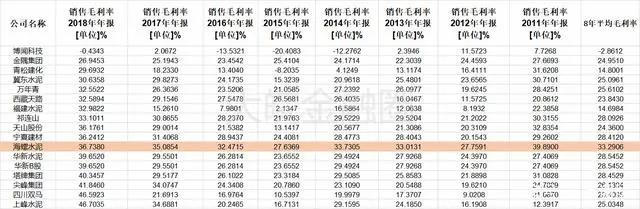 再看毛利率,在這份匯總了A股所有水泥公司近八年來毛利率情況的圖表里,海螺水泥基本每年的排名都處于前列,并且整體均值是同行里第一,和同業(yè)相比海螺水泥的業(yè)績增速起伏波動并不大,這說明了在較長的時間里,海螺水泥的盈利能力是強大且穩(wěn)定的。
