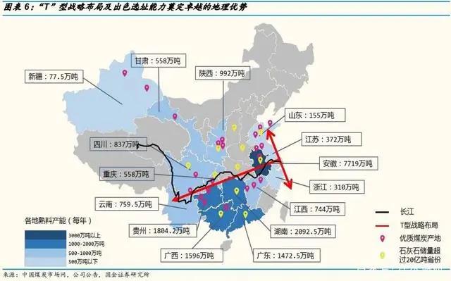 1997年,海螺水泥赴港上市融資,隨后沿長江布點實施“T”型發(fā)展戰(zhàn)略,T型的橫豎對應著長江和沿海,其含義是在擁有豐富石灰石資源的區(qū)域建立大規(guī)模生產的熟料基地,利用長江的低成本水運物流,到達長江沿岸和東部沿海擁有大容量水泥消費的城市群,并在當地建立粉磨站基地。