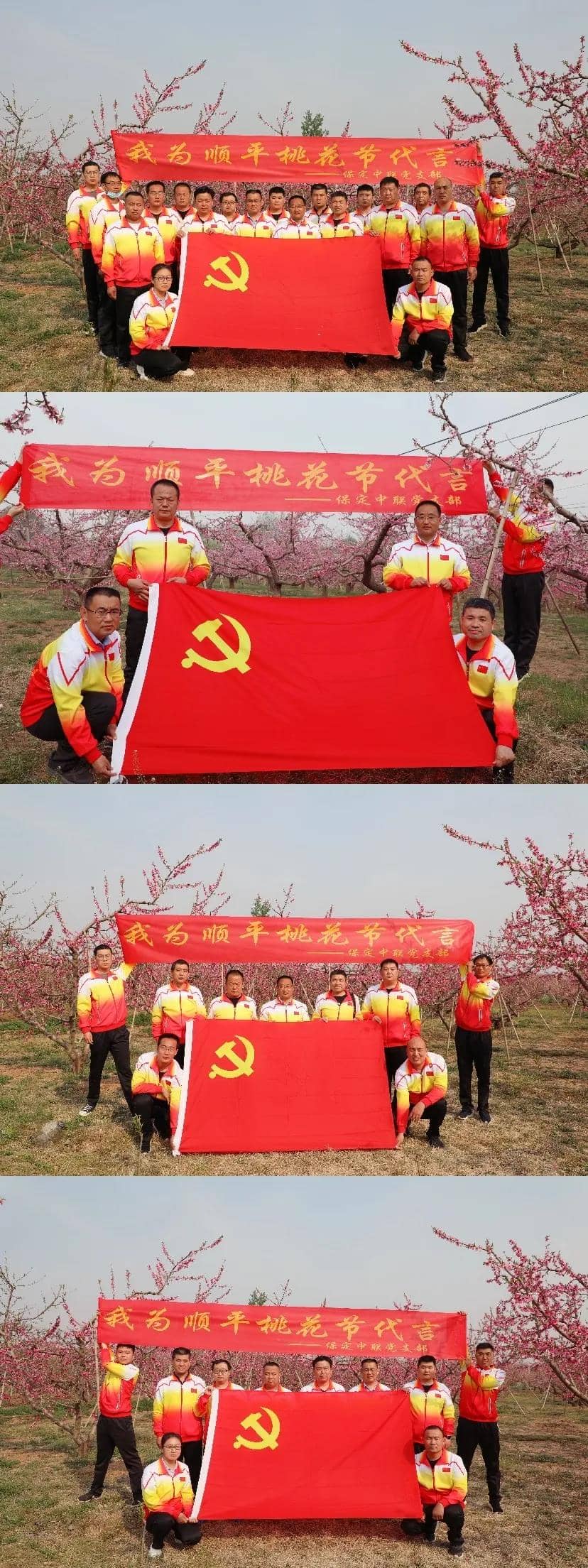 4月15日上午,保定中聯(lián)黨支部為深化“黨日活動”組織開展了“我為順平桃花節(jié)代言”活動,黨支部書記、總經(jīng)理郝志江帶領(lǐng)全體黨員深入桃花節(jié)現(xiàn)場,以攝影宣傳的方式為順平縣生態(tài)旅游經(jīng)濟發(fā)展盡綿薄之力。