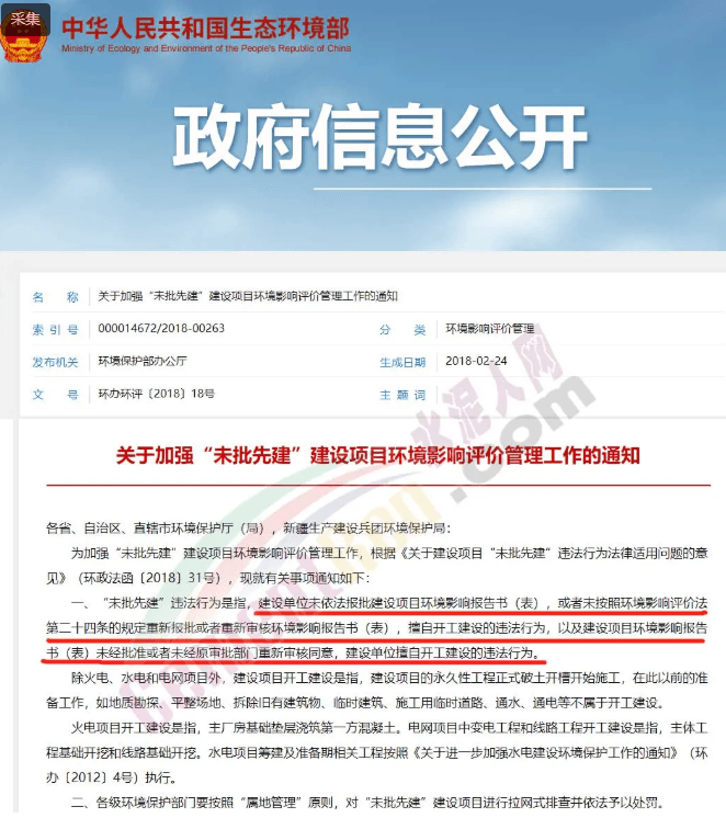 生態(tài)環(huán)境部發(fā)布的《關(guān)于加強(qiáng)“未批先建”建設(shè)項(xiàng)目環(huán)境影響評價(jià)管理工作的通知》明確指出,建設(shè)單位未依法報(bào)批建設(shè)項(xiàng)目環(huán)境影響報(bào)告書(表),或者是未按照環(huán)境影響評價(jià)法第二十四條的規(guī)定重新報(bào)批或者重新審核環(huán)境影響報(bào)告書(表),擅自開工建設(shè)的違法行為,以及建設(shè)項(xiàng)目環(huán)境影響報(bào)告書(表)未比批準(zhǔn)或者未經(jīng)原審批部門重新審核同意,建設(shè)單位擅自開工建設(shè)的行為,均為未批先建違法行為。