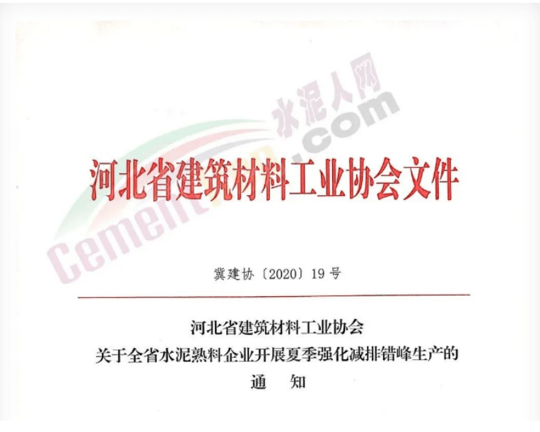 日前,河北省建筑材料工業(yè)協(xié)會發(fā)布《關于全省水泥熟料企業(yè)開展夏季強化減排錯峰生產(chǎn)的通知》,河北省水泥企業(yè)結合疫情防控和復工復產(chǎn)情況,冀中南區(qū)域錯峰停窯10天,冀北區(qū)域錯峰停窯10天。