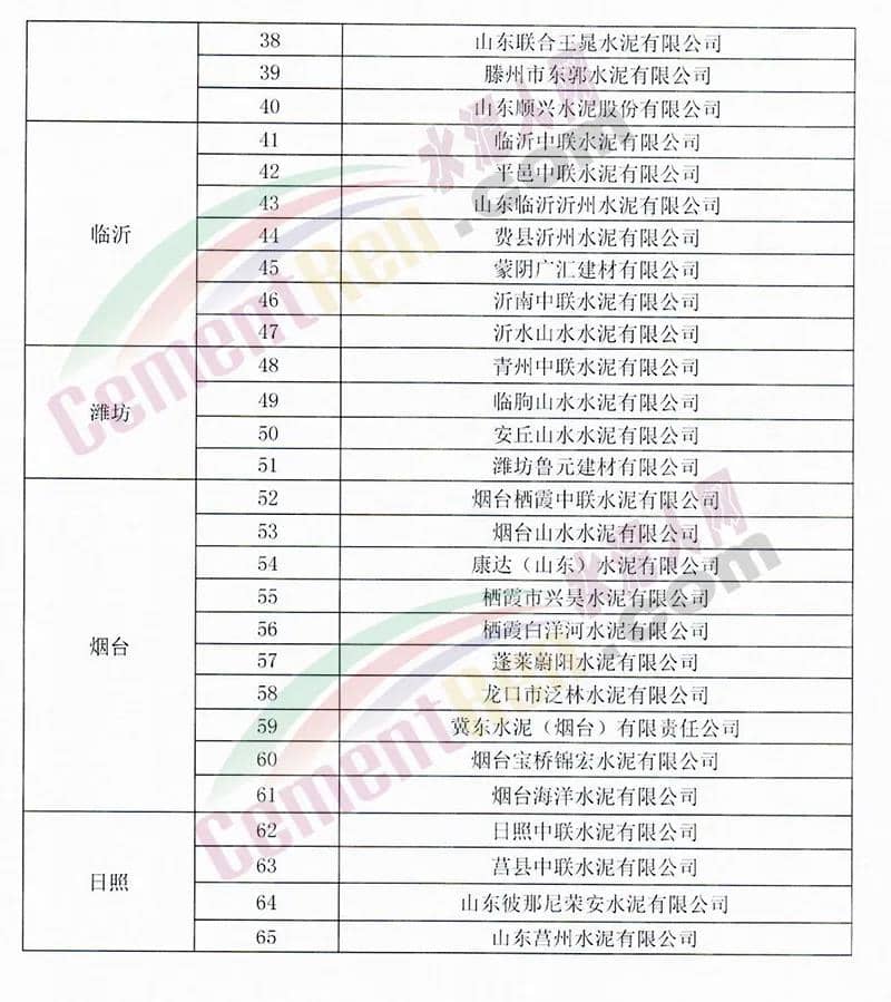 山東省水泥企業(yè)的熟料生產(chǎn)線,不含特種水泥窯,含建通窯。