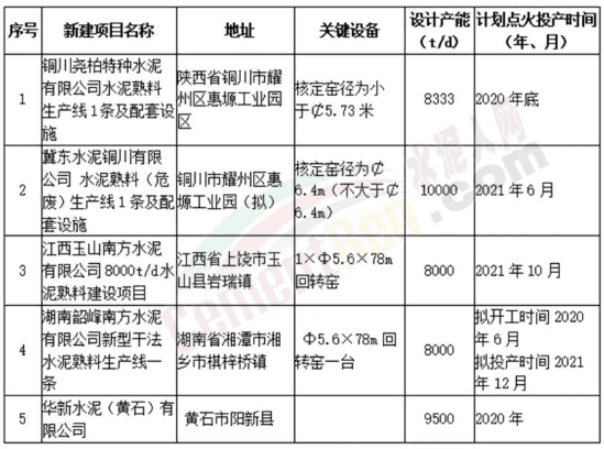 據(jù)水泥人網(wǎng)不完全統(tǒng)計(jì),近一年內(nèi)公示公告的置換、新建、在建項(xiàng)目中包括5條萬(wàn)噸線項(xiàng)目并將集中于近三年內(nèi)點(diǎn)火投產(chǎn)。