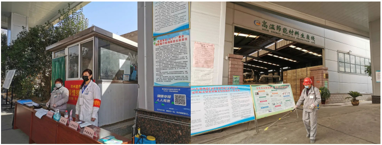 正式復(fù)工后,每日將員工健康信息通過“掃碼”上報給上級主管部門,每天對車間、辦公樓、餐廳、宿舍等公共場所至少開展2次大面積消毒工作;公司門口設(shè)置有檢測崗位,專人負責(zé)體溫測量和管理,建立臺賬,做好進入廠區(qū)車輛、人員登記;保持生產(chǎn)車間環(huán)境清潔、通風(fēng),每個工位之間保持1米以上距離作業(yè),佩戴口罩;嚴(yán)格食堂進餐管理,采用分時就餐;公司儲備了至少滿足2周需要的防護和消殺用品……