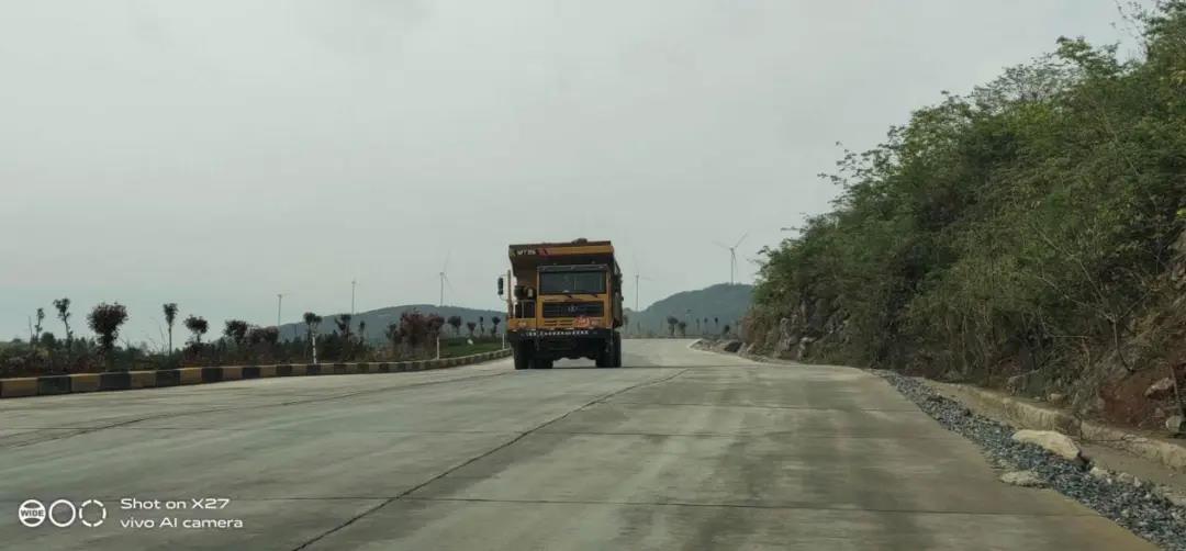 (1)道路設(shè)施。在與業(yè)主的積極溝通下,對礦山運礦道路全長約2.7公里進(jìn)行路面硬化,道路寬8~9米,硬化厚度30cm,最大縱坡為8%,達(dá)到三級公路標(biāo)準(zhǔn),并同步完善設(shè)置應(yīng)急避險車道,彎道凹面鏡設(shè)置,道路護(hù)坡墻、截排水溝等設(shè)施,大大減少因路面坑洼不平產(chǎn)生的安全隱患,避免因路面寬度不足、無應(yīng)急避險車道、彎道視野有限等因素發(fā)生運輸安全事故。