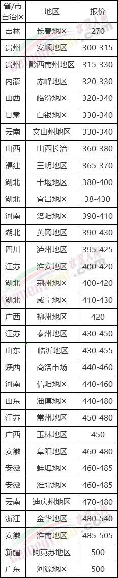 PO42.5散裝報價(單位:元/噸)