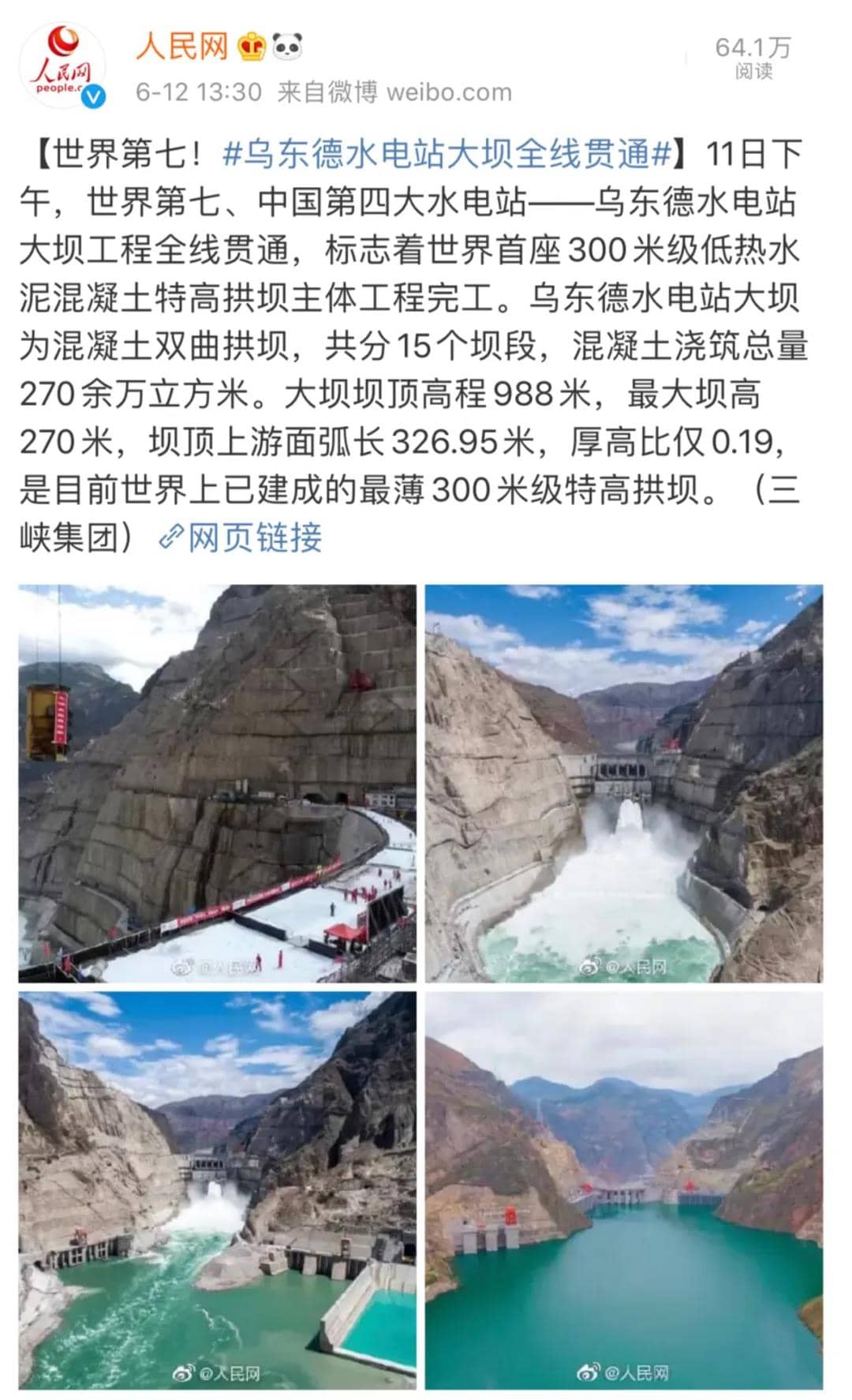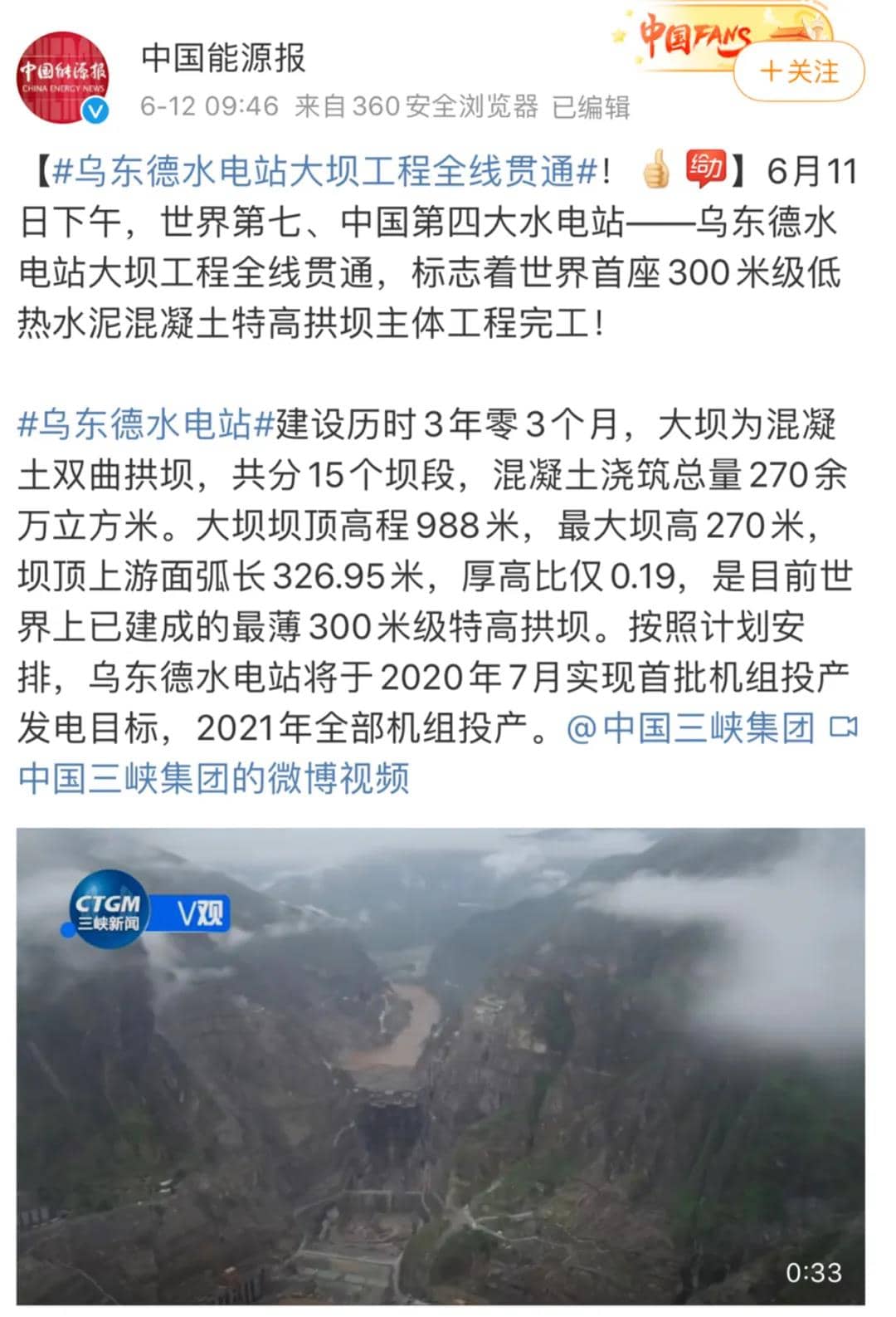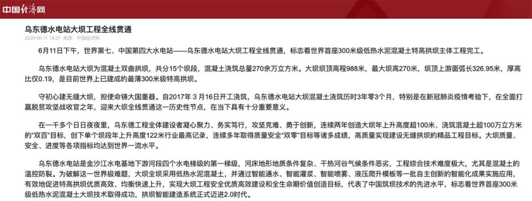 烏東德水電站這一重大工程節(jié)點立刻吸引了大量媒體關(guān)注包括人民日報、新華社中央電視臺、國資小新、光明日報等主流媒體第一時間對此事進行了報道快來看看吧!