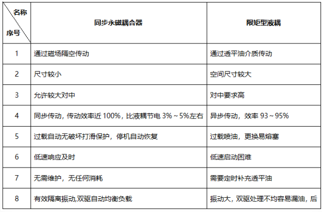 同步永磁耦合器與限矩型液耦的技術(shù)對(duì)比