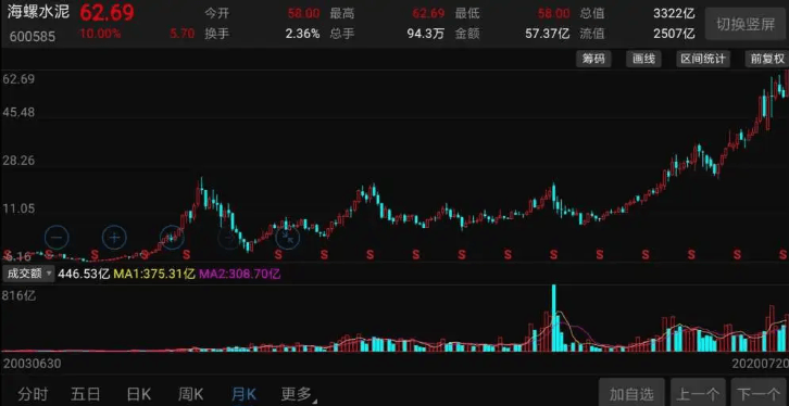 其中,全國最大水泥制造公司海螺水泥漲停,市值超過3300億,達(dá)到3322億。其余幾只水泥股,上峰水泥漲超9%、北新建材漲停、祁連山漲超8%、萬年青漲停。