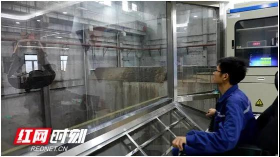 10月26日,在湖南省祁陽縣海創(chuàng)環(huán)??萍加邢薰局锌夭僮髦行?,技術人員正透過玻璃墻操控大型機器手處理廢物垃圾。說到垃圾處理廠,很多人的第一印象就是惡臭難聞,而這里卻聞不到一絲異味。