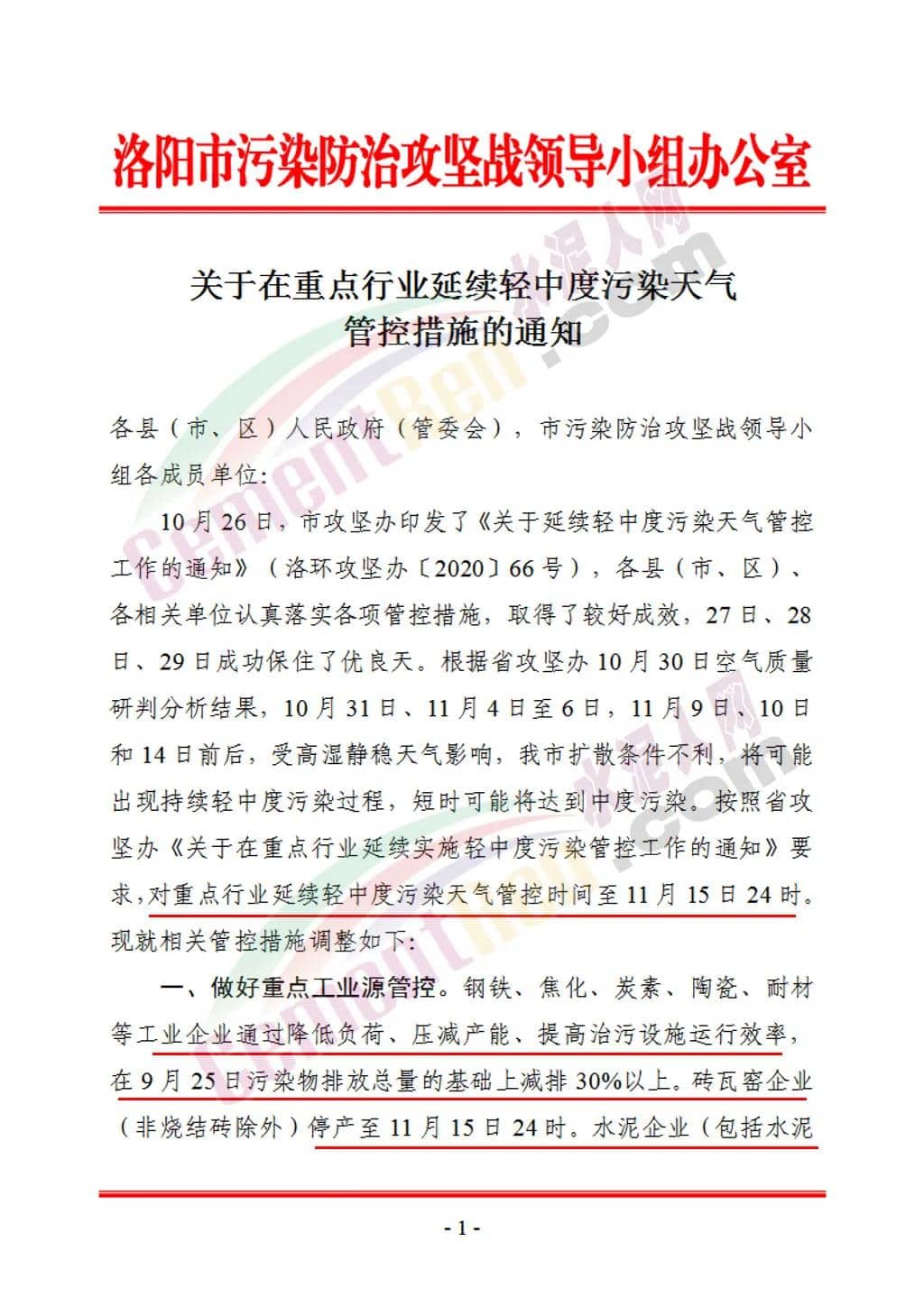 同期,河南省新鄉(xiāng)市、洛陽市等區(qū)域環(huán)保部門分別發(fā)布在重點行業(yè)延續(xù)輕中度污染天氣管控措施的通知。