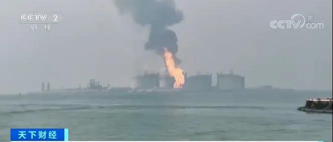 多段視頻顯示,當(dāng)時(shí),鐵山港區(qū)LNG液化天然氣接收站碼頭內(nèi),一LNG儲(chǔ)罐頂部躥起火苗,滾滾濃煙里,火勢十分猛烈。事發(fā)后,多名身著制服,頭戴安全帽的工人快速撤離起火儲(chǔ)罐。