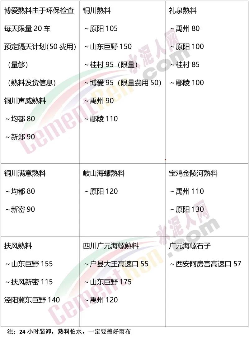 自去年四季度河南區(qū)域經(jīng)銷商將山西熟料“拉空”后,跨省到陜西采購(gòu)以來(lái),關(guān)中區(qū)域就一直有熟料供應(yīng)河南區(qū)域。而且不僅銅川聲威建材,海螺、冀東、堯柏以及四川廣元區(qū)域均有熟料和水泥經(jīng)由貿(mào)易商轉(zhuǎn)售到河南多區(qū)域。從貿(mào)易商近期發(fā)布相關(guān)信息可見,熟料從陜西區(qū)域運(yùn)至河南區(qū)域運(yùn)費(fèi)約在80~100元左右,到達(dá)山東荷澤區(qū)域運(yùn)費(fèi)在120~155元左右。且通知因環(huán)保管控每天限量20車,需提前以現(xiàn)金預(yù)定。