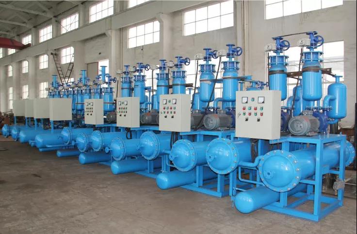 用于水泥行業(yè)余熱發(fā)系統(tǒng)的高效率抽真空裝置由前置冷卻過濾器、快速啟閉特制真空電動閥、高密封軟性閘門、高強度止回閥、高效率真空泵、冷卻油罐、油水分離器、集成一體化控制柜等組成。