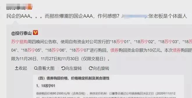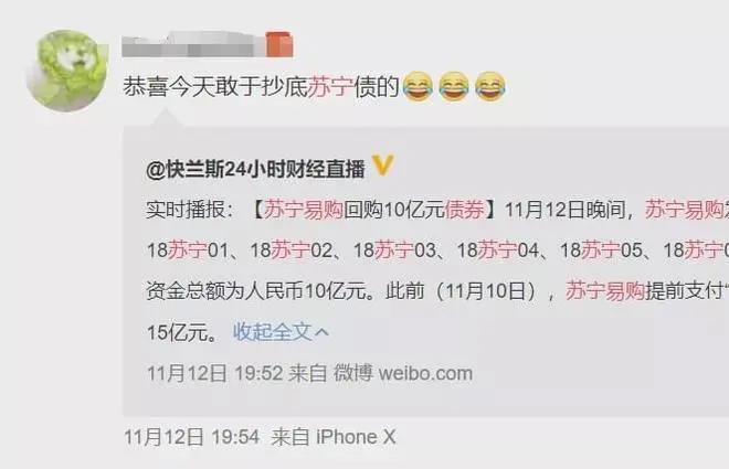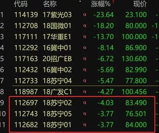 是的,上市公司蘇寧易購的債券,也大跌了。