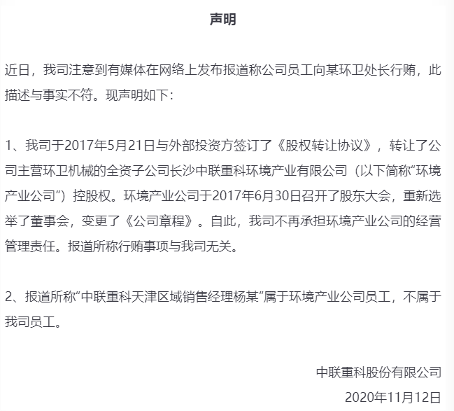 記者就上述中聯(lián)重科、龍馬環(huán)衛(wèi)員工行賄的情況向2家公司進(jìn)行采訪求證。中聯(lián)重科證券部回應(yīng)不了解情況,提供品牌部的電話,無人接聽。龍馬環(huán)衛(wèi)證券部回應(yīng),初步確認(rèn)判決書中涉及的柳某并非公司員工,公司還在向銷售部核實(shí),核實(shí)后可能會向法院反映修正。