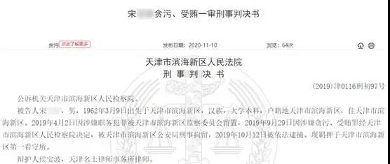 天津市濱海新區(qū)人民法院刑事判決書((2019)津0116刑初97號)顯示,天津市濱海新區(qū)人民檢察院以津?yàn)I檢三部刑訴〔2019〕5號起訴書指控被告人宋某有犯貪污罪、受賄罪于2019年11月27日向法院提起公訴,法院經(jīng)審查于2019年12月3日立案受理。2020年4月29日,由于不可抗拒的原因,法院裁定中止審理本案;2020年8月17日,法院裁定恢復(fù)審理本案。本案經(jīng)公訴機(jī)關(guān)補(bǔ)充偵查一次,現(xiàn)已審理終結(jié)。