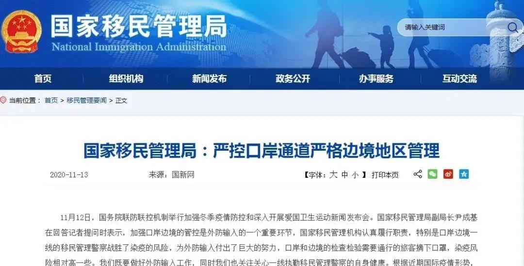 在11月13日,國務院僑務辦公室又轉(zhuǎn)發(fā)了中國國家移民局的一份最新聲明:嚴格控制不必要人員跨境活動。