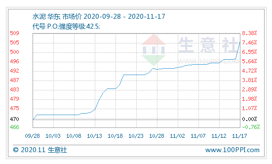 進入11月后,水泥需求持續(xù)向好,華東市場仍然處于傳統(tǒng)旺季,水泥行情持續(xù)上漲。泛東北地區(qū)已開始錯峰生產(chǎn),黑龍江自2020年11月15日至2020年12月31日,在全省境內(nèi)所有水泥熟料生產(chǎn)企業(yè)(含利用電石渣生產(chǎn)熟料的企業(yè))實行錯峰生產(chǎn)。在各地錯峰生產(chǎn)的影響下,水泥庫存下降較快,總體來說,水泥需求平穩(wěn)向好,為提升盈利,各大水泥廠家出貨積極,挺價上升。