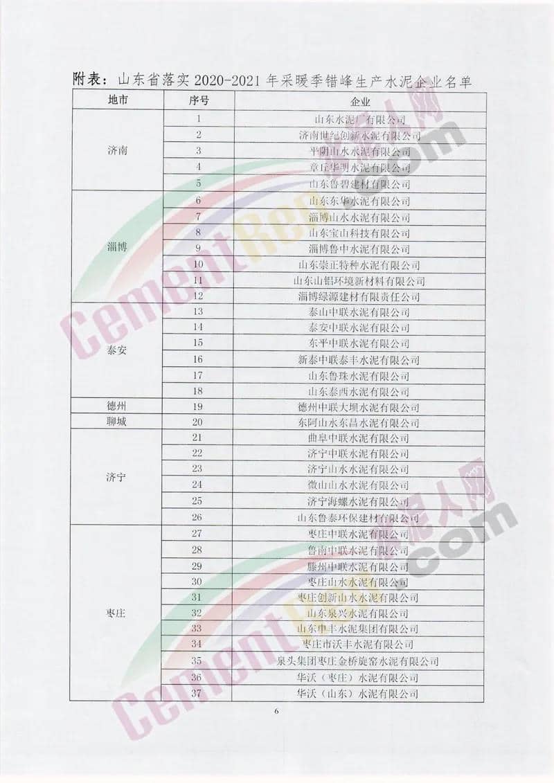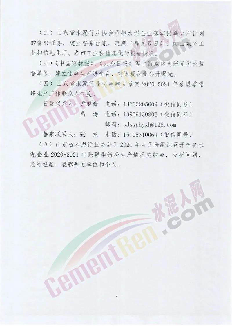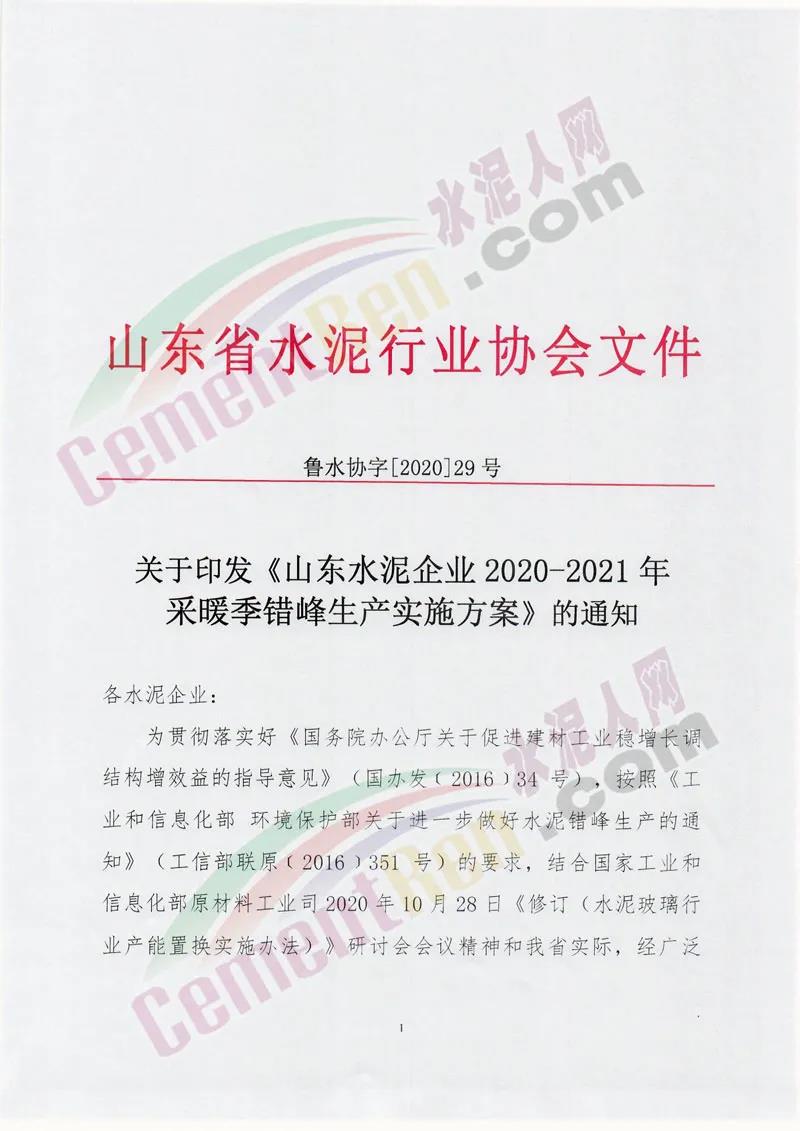 3、釆暖季錯(cuò)峰生產(chǎn)期間承擔(dān)特殊任務(wù)的水泥熟料生產(chǎn)線的補(bǔ)足錯(cuò)峰生產(chǎn)時(shí)間計(jì)劃方案中必須明確采暖季錯(cuò)峰生產(chǎn)結(jié)束后 補(bǔ)足錯(cuò)峰生產(chǎn)時(shí)間的具體時(shí)間安排,且補(bǔ)足錯(cuò)峰生產(chǎn)的時(shí)間不沖抵山東省水泥行業(yè)協(xié)會(huì)在2021年酷暑優(yōu)天、雨季、農(nóng)忙時(shí)節(jié) 和重大活動(dòng)組織的水泥熟料生產(chǎn)線不少于40天的錯(cuò)峰生產(chǎn)時(shí) 間。未能按照補(bǔ)足錯(cuò)峰生產(chǎn)時(shí)間計(jì)劃方案執(zhí)行的,一律為違規(guī)行為。通知原文如下: