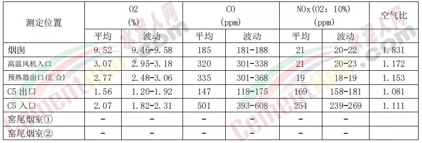O2/CO/NOx 測(cè)定結(jié)果 (2019 年 9 月 22 日 上午 實(shí)測(cè)結(jié)果) 投料量=261(t-raw/h) 頭煤量=6.70(t-coal/h) 尾煤量=11.80(t-coal/h) 高溫風(fēng)機(jī)轉(zhuǎn)速=894(rpm) 氨水用量=0.3~0.4(m3/h)