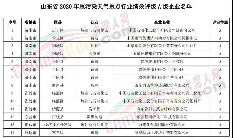3、山東省2020年重污染天氣重點(diǎn)行業(yè)績(jī)效評(píng)級(jí)引領(lǐng)性企業(yè)名單