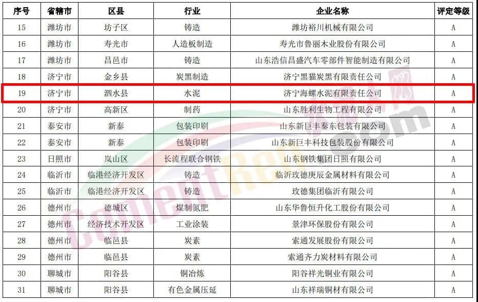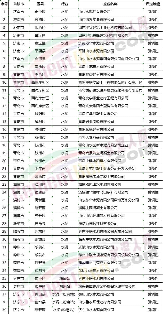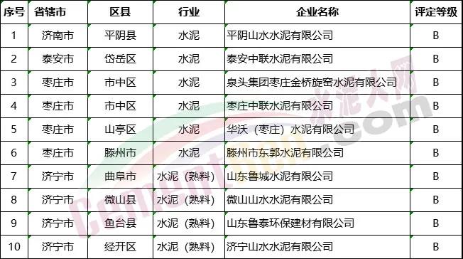 績(jī)效評(píng)級(jí)B級(jí)水泥企業(yè)名單