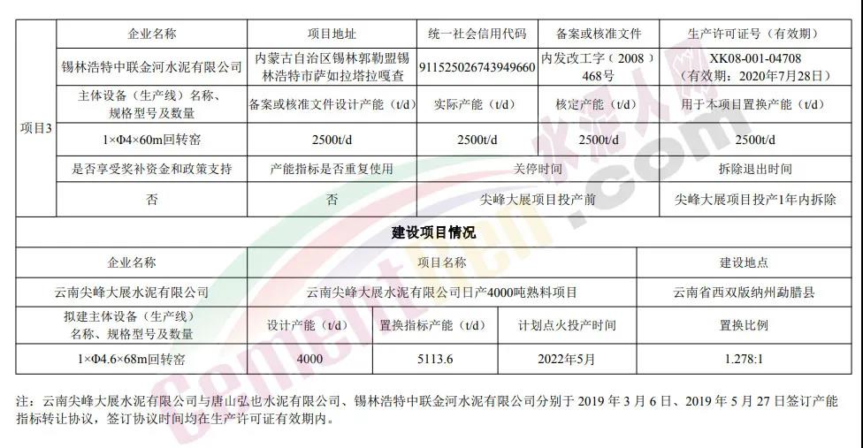 日前,云南工信廳發(fā)布《云南尖峰大展水泥有限公司日產(chǎn)4000噸熟料建設(shè)項(xiàng)目產(chǎn)能置換方案公示》稱,按照相關(guān)文件要求,現(xiàn)將“云南尖峰大展水泥有限公司日產(chǎn)4000噸熟料建設(shè)項(xiàng)目產(chǎn)能置換方案”予以公示。公示期為2020年11月25日至12月8日。如有異議,請(qǐng)于公示期內(nèi)向云南省工業(yè)和信息化廳反映,歡迎社會(huì)公眾進(jìn)行監(jiān)督。公示文件全文如下: