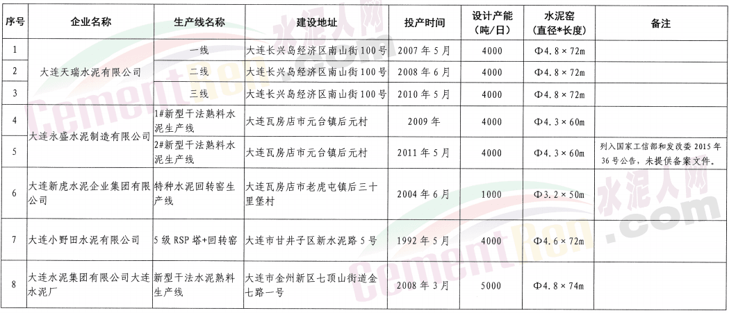 遼寧省水泥熟料生產(chǎn)線清單截止時(shí)間:2020年11月