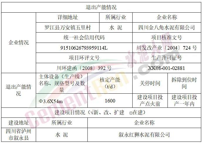 廣漢三星堆水泥有限公司產(chǎn)能指標(biāo)轉(zhuǎn)出方案