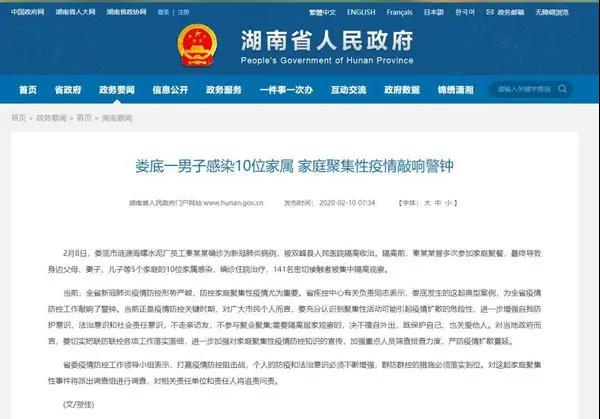 今年2月初,湖南自?shī)涞诐i源海螺水泥廠員工秦某某確診為新冠肺炎病例,被雙峰縣人民醫(yī)院隔離收治。隔離前,秦某某曾多次參加家庭聚餐,最終導(dǎo)致身邊父母、妻子、兒子等5個(gè)家庭的10位家屬感染確診住院治療,141名密切接觸者被集中隔離觀察。針對(duì)此案婁底市公案機(jī)關(guān)湖南省政府分別發(fā)布通告及警示。