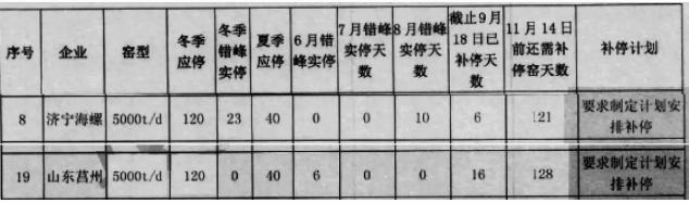 2020年9月下旬山東水省水泥行業(yè)協(xié)會(huì)發(fā)文要求,2019-2020年錯(cuò)峰生產(chǎn)未執(zhí)行到位的企業(yè),于2020年11月14日前嚴(yán)格落實(shí)補(bǔ)停窯計(jì)劃,確保停滿160天。然而從發(fā)文當(dāng)天到11月14日只有60多天,卻要求企業(yè)停100多天,簡(jiǎn)直就是不可能完成的任務(wù)。