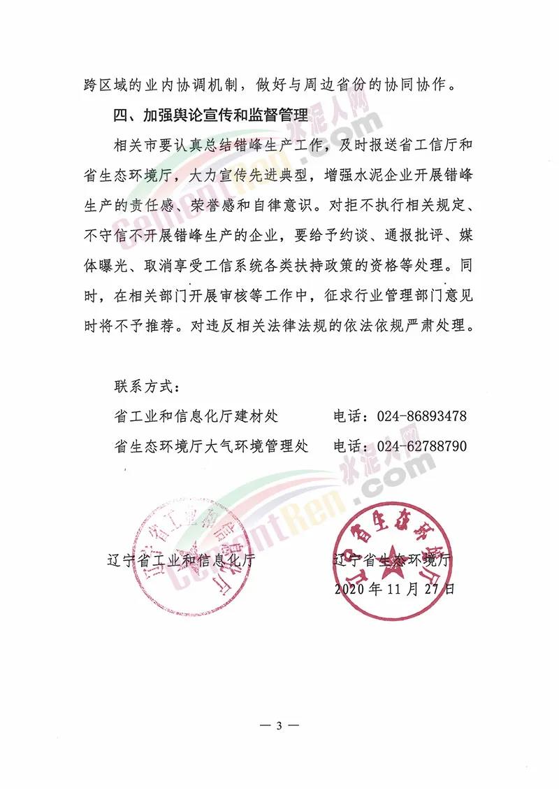 相關(guān)市要認(rèn)真總結(jié)錯(cuò)峰生產(chǎn)工作,及時(shí)報(bào)送省工信廳和省生態(tài)環(huán)境廳,大力宣傳先進(jìn)典型,增強(qiáng)水泥企業(yè)開展錯(cuò)峰生產(chǎn)的責(zé)任感、榮譽(yù)感和自律意識(shí)。對(duì)拒不執(zhí)行相關(guān)規(guī)定、不守信不開展錯(cuò)峰生產(chǎn)的企業(yè),要給予約談、通報(bào)批評(píng)、媒體曝光、取消享受工信系統(tǒng)各類扶持政策的資格等處理。同時(shí),在相關(guān)部門開展審核等工作中,征求行業(yè)管理部門意見時(shí)將不予推薦。對(duì)違反相關(guān)法律法規(guī)的依法依規(guī)嚴(yán)肅處理。通知原文如下:
